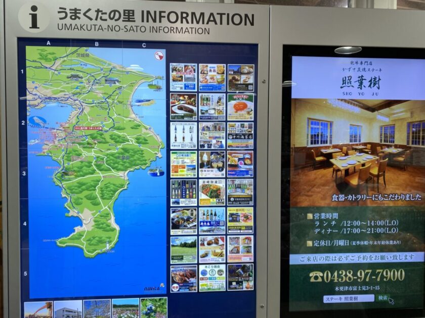 入口は2つありますが、コミュニティースペースがある方から入ると、房総半島の観光インフォメーション電子版があります。