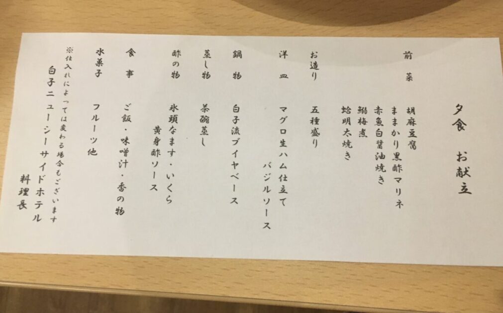 白子シーサイドホテルの夕食も美味しかったです❤️