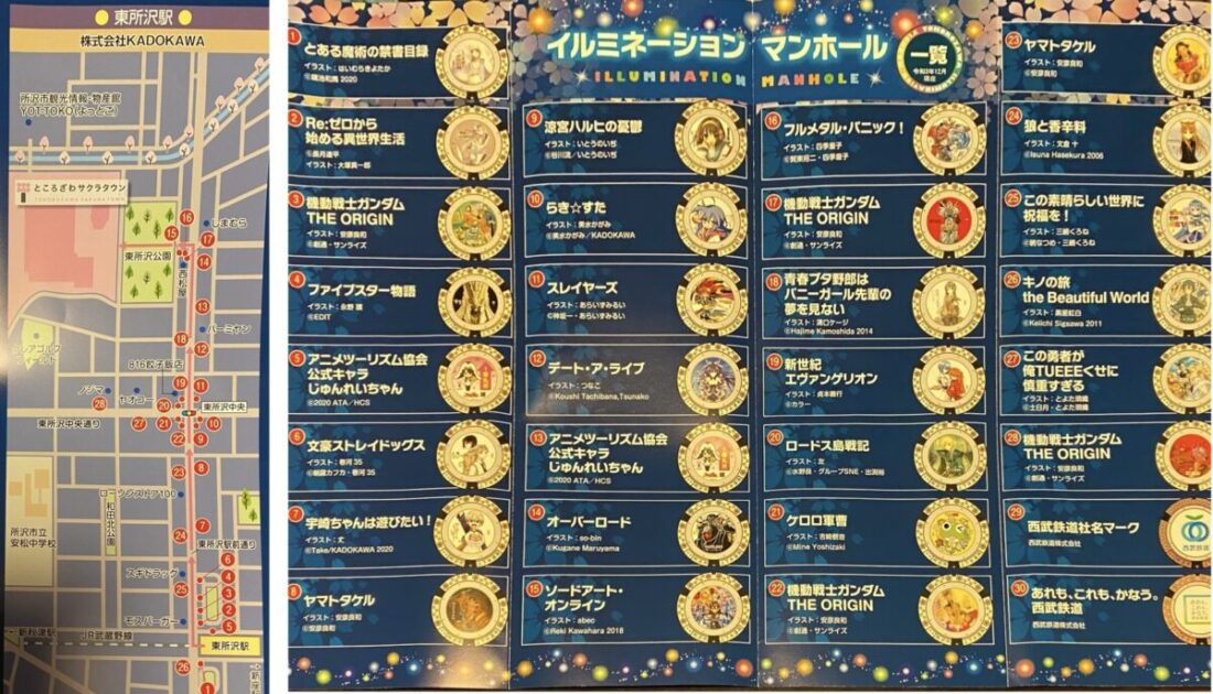 所沢市と株式会社KADOKAWAの共同制作マンホール蓋。
