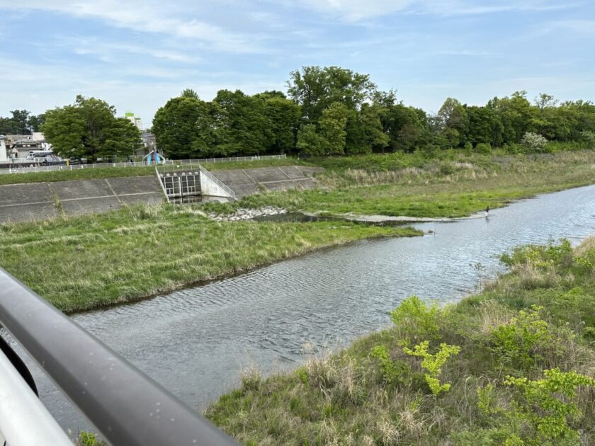あきる野市ではこんな大自然な多摩川も、すぐ隣の福生市では取水口らしき物があったり徐々に人工的になってくる。